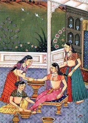 L'Inde ancienne a créé une médecine, l'ayurveda, qui entre autres traitements, inclut encore aujourd'hui des massages vigoureux sur un lit de bois inondé d'huile spécifique. Le tantrisme a repris les fondements de l'ayurveda mais en occident, il n'a plus de vocation médicale ; ses massages visent à la relaxation, au plaisir et au bien-être en éliminant tensions, stress et fatigue. Il considère que le corps forme un ensemble cohérent sans parties nobles (la tête) ou honteuse (le sexe), ce qui est d'ailleurs le B-A BA de la médecine moderne. Il pense que l'être humain est animé d'une énergie qu'il partage avec l'univers, générée par des sortes de "centrales", les sept chakras, répartis du périnée au sommet du crâne. Cette énergie est diffusée dans tout le corps par les nadis, une réseau actuellement invisible, pourtant bien connu des acupuncteurs dont personne ne doute de la compétence. Les massages visent à doper cette énergie et à la fluidifier. Le chakra le plus important se trouve au niveau du périnée puisqu'il donne la vie et lui permet de se perpétuer ; c'est aussi celui qui génère le plus de plaisir, voilà pourquoi le massage de cette zone est fondamental.